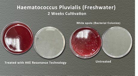 Haematococcus pluvialis (freshwater) cultivation: Plate cultivation was used to compare differences in bacterial proliferation with and without HKE resonance titanium plate treatment.